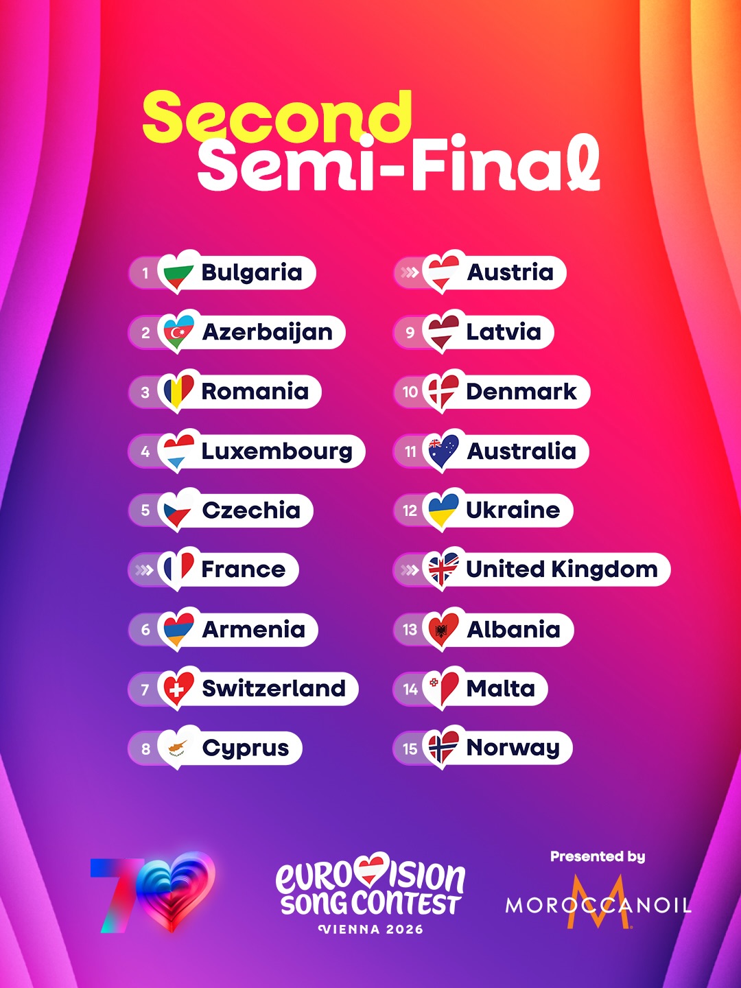 Υπενθυμίζουμε πως στον διαγωνισμό της Eurovision 2026 όλα θα κριθούν στις τρεις βραδιές που θα προβληθούν παγκοσμίως την Τρίτη 12/5, την Πέμπτη 14/5 και το Σάββατο 16 Μαϊου στην Βιέννη.