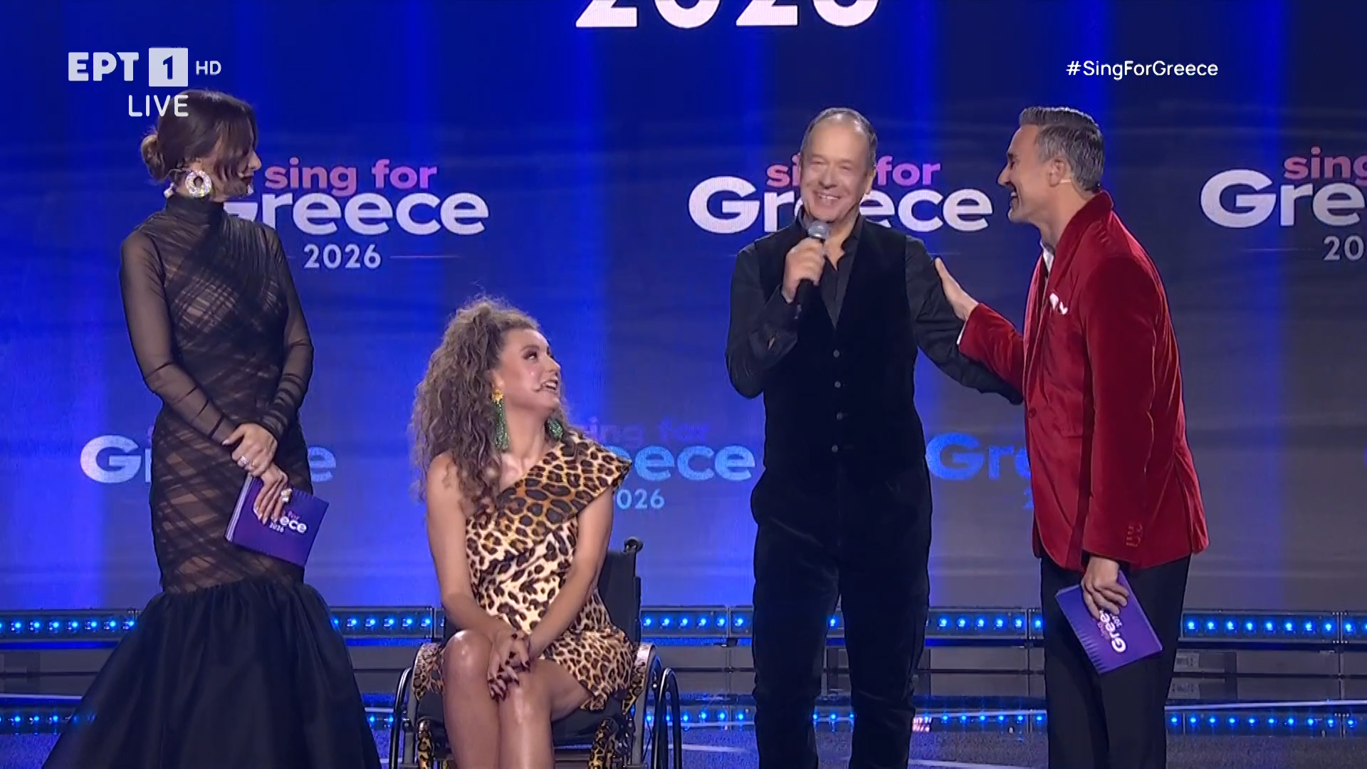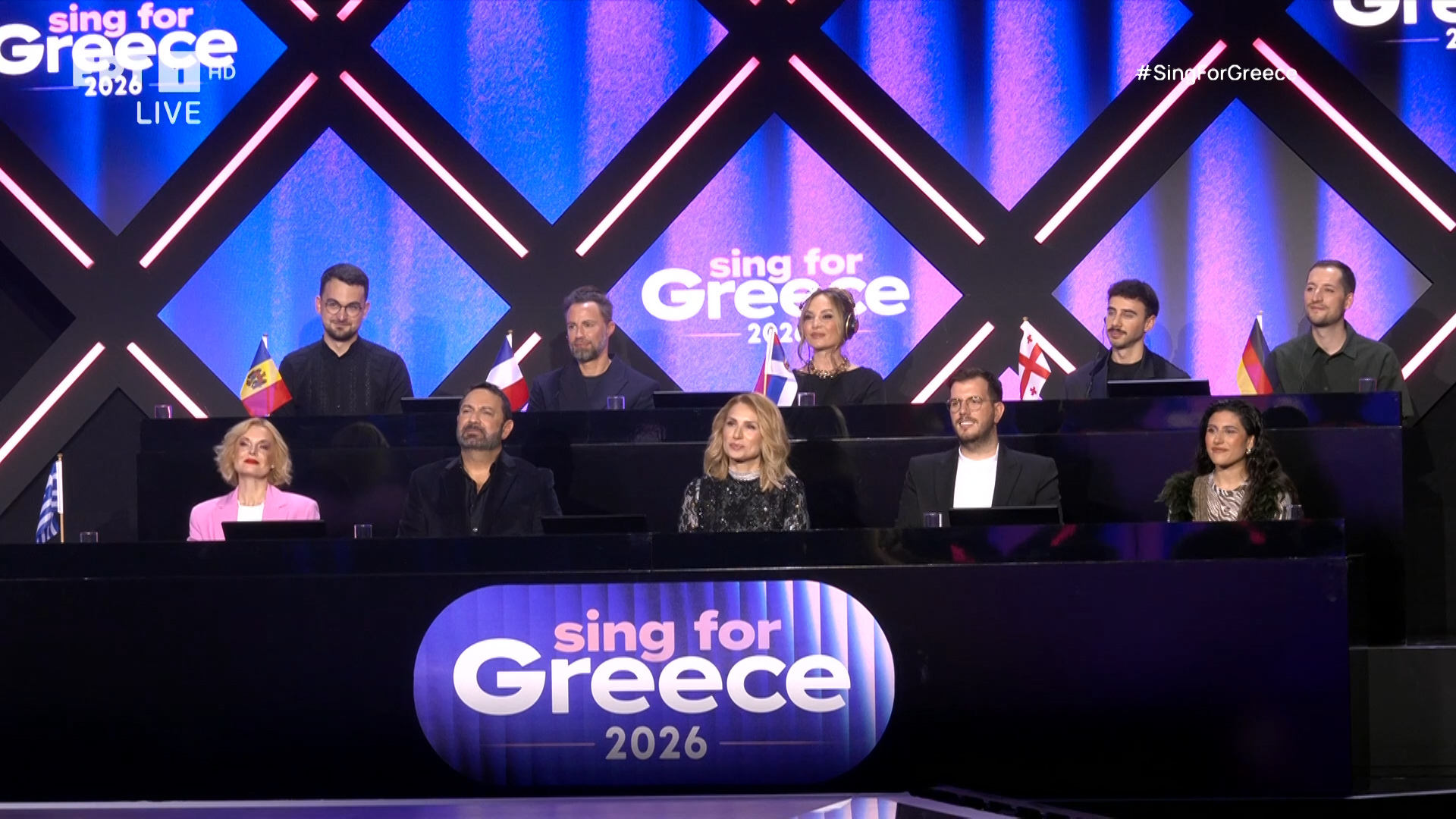 21:00 Η live μετάδοση του Sing for Greece 2026 ξεκινά! Στη σκηνή οι 3 παρουσιαστές της φετινής διοργάνωσης, Γιώργος Καπουτζίδης, Μπέττυ Μαγγίρα και Κατερίνα Βρανά, καθισμένοι έναν καναπέ. Απέναντί τους σε άλλον καναπέ η περσινή μας εκπρόσωπος στη Eurovision, Klavdia, με τον κιθαρίστα της, τραγουδά acapella το “Δικό σου Αστέρι” της Μαριάννας Ευστρατίου (Ελλάδα 1989) και αμέσως μετά την “Άνοιξη” (Ελλάδα 1991).