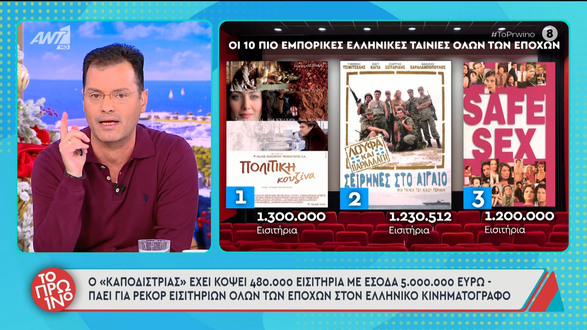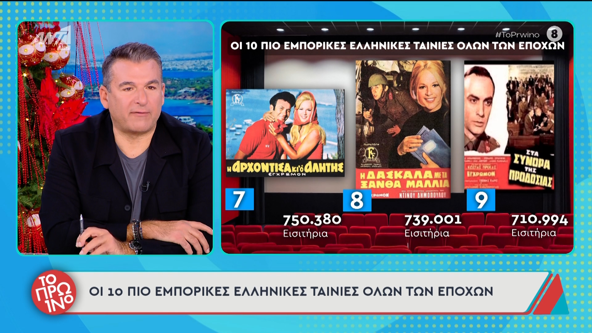 Στη συνέχεια, ο Τάσος Τεργιάκης παρουσίασε τις δέκα εμπορικότερες ελληνικές ταινίες όλων των εποχών, με την «Πολίτικη Κουζίνα» να βρίσκεται στην πρώτη θέση με 1.300.000 εισιτήρια.