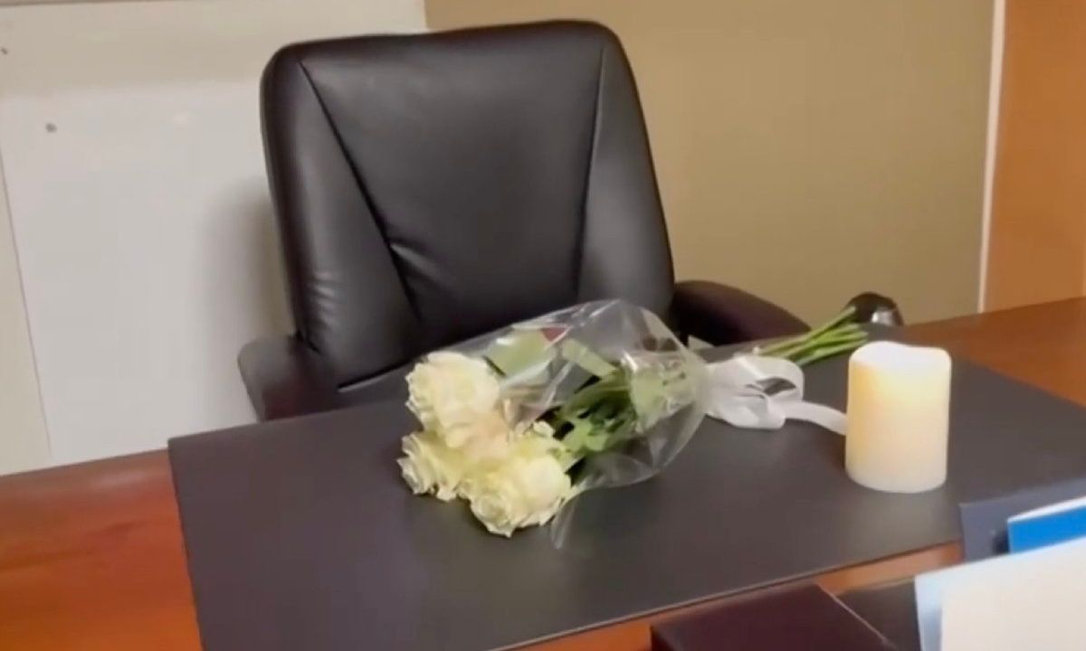 Ιδιαίτερα συγκινητική ήταν και η εικόνα που προβλήθηκε από το γραφείο του Γιώργου Παπαδάκη στον ΑΝΤ1. Συγκεκριμένα, έχει τοποθετηθεί ένα αναμμένο κερί, ενώ λευκά τριαντάφυλλα είχαν αφεθεί ως ελάχιστος φόρος τιμής στη μνήμη του.