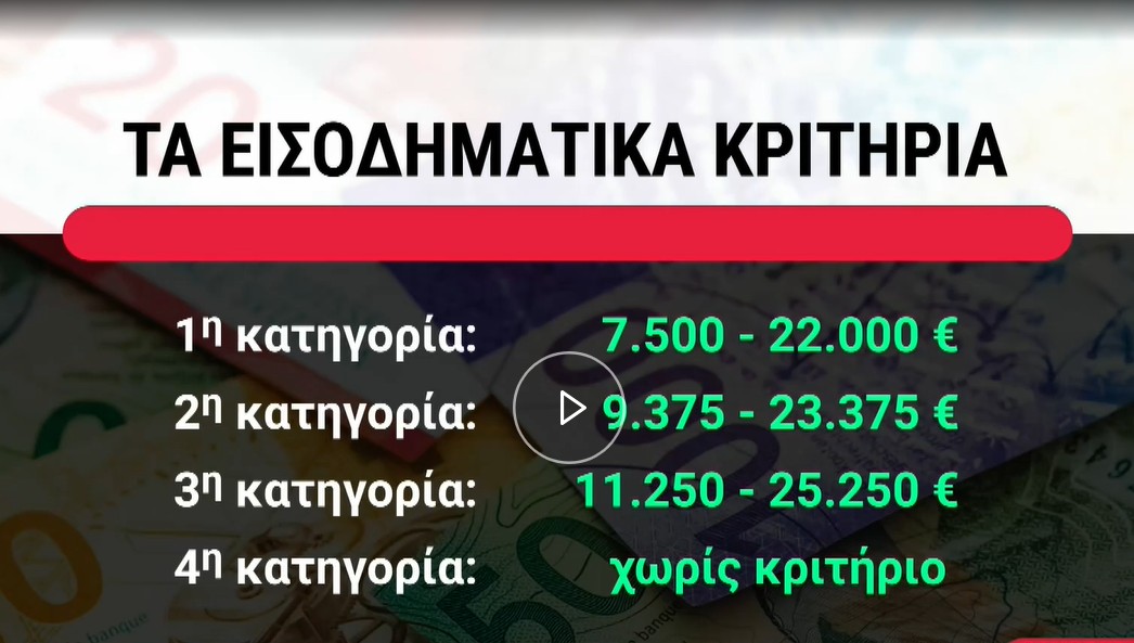 Στο εισοδηματικό κριτήριο, που είναι και το βασικότερο, το εύρος εξαρτάται από τη σύνθεση του νοικοκυριού.