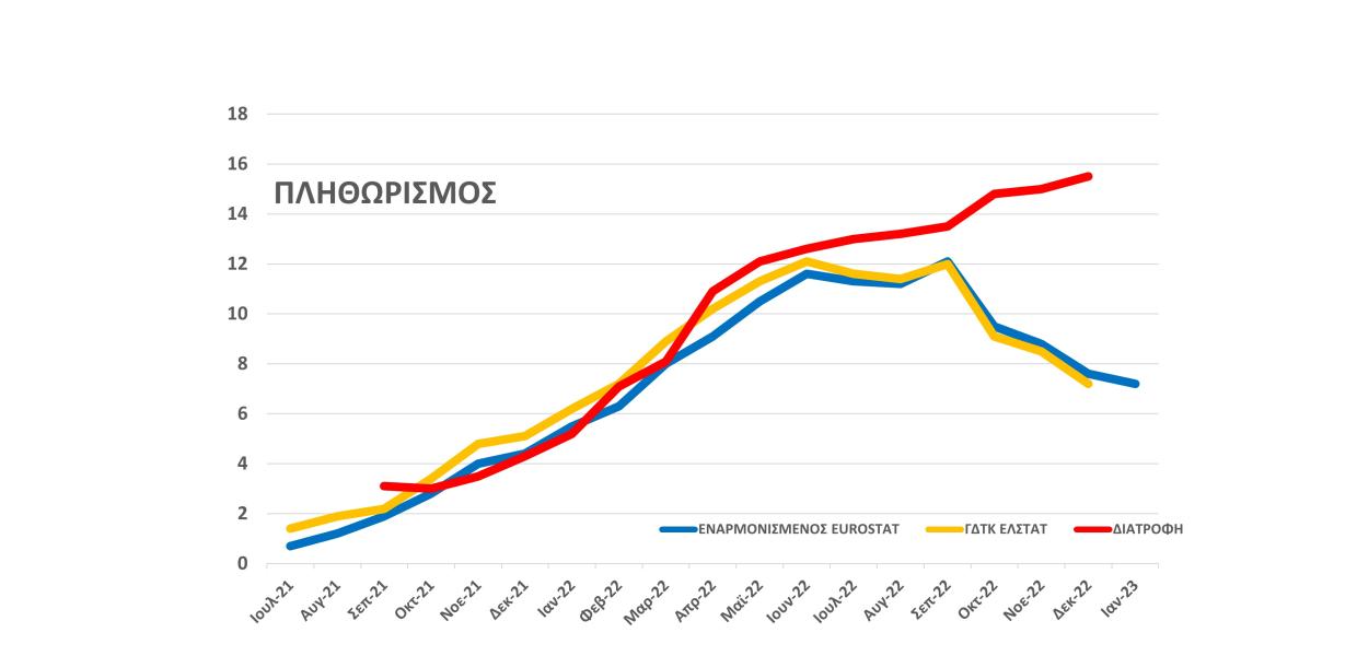 Eurostat: Στο 7,2% ο πληθωρισμός στην Ελλάδα τον Ιανουάριο
