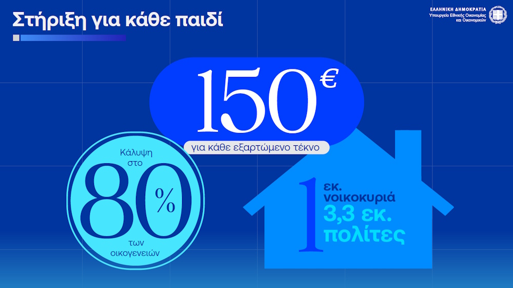 Πρόκειται για μία οριζόντια παρέμβαση, που στοχεύει κατευθείαν στο οικογενειακό εισόδημα, σε μια περίοδο όπου το κόστος στέγασης, τροφίμων και καθημερινών αναγκών πιέζει περισσότερο τα νοικοκυριά με παιδιά.
