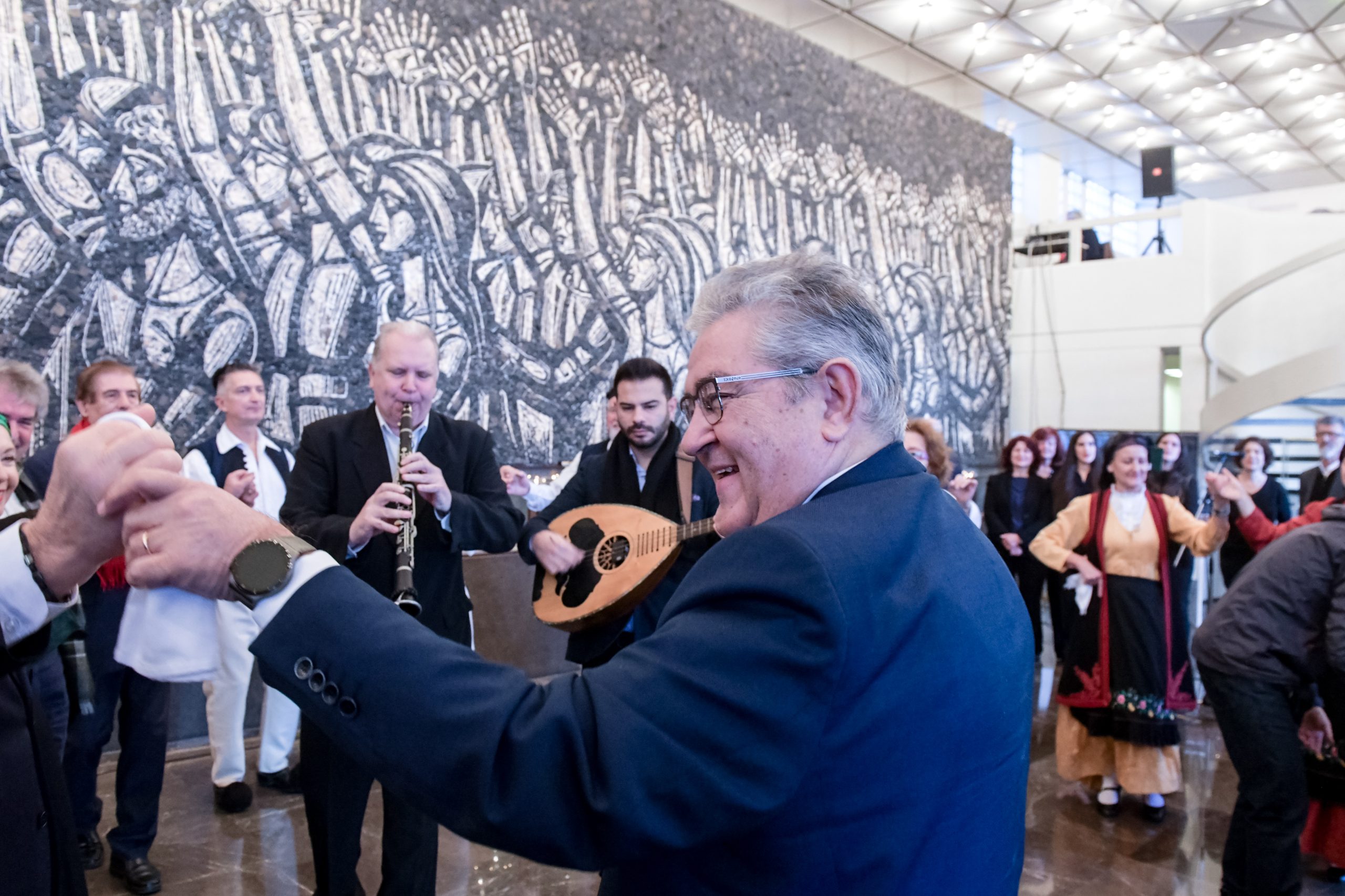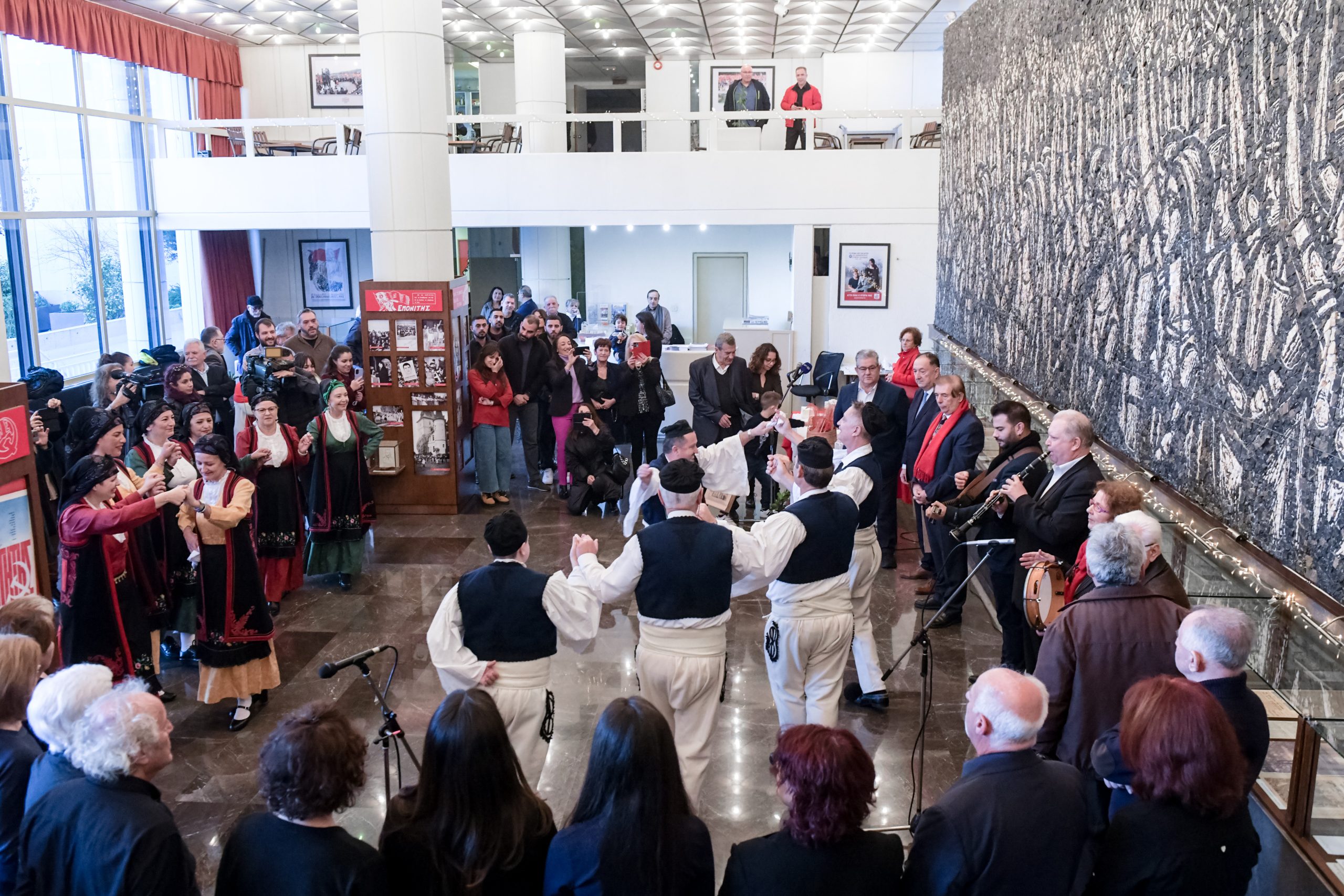 Τα πρωτοχρονιάτικα κάλαντα τραγούδησαν επίσης στον Δημήτρη Κουτσούμπα τα μέλη του Συλλόγου «Ελληνικοί Χοροί Παραδοσιακή Φλόγα», τα οποία χόρεψαν και παραδοσιακούς χορούς της πατρίδας μας.