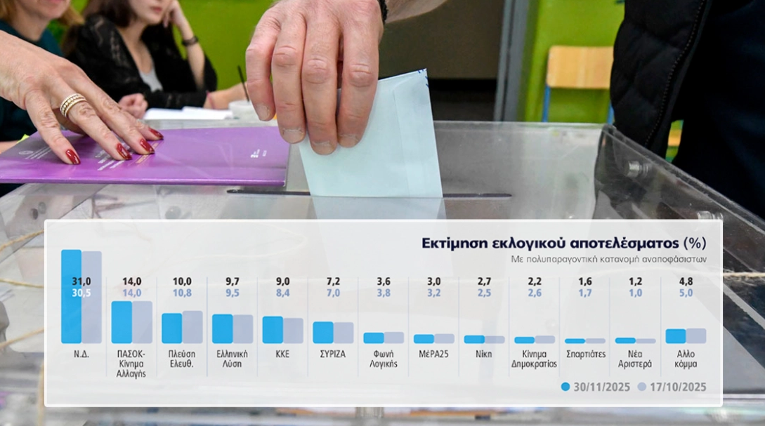 Δημοσκόπηση Marc: Η ΝΔ προηγείται του ΠΑΣΟΚ με πάνω από 15 μονάδες
