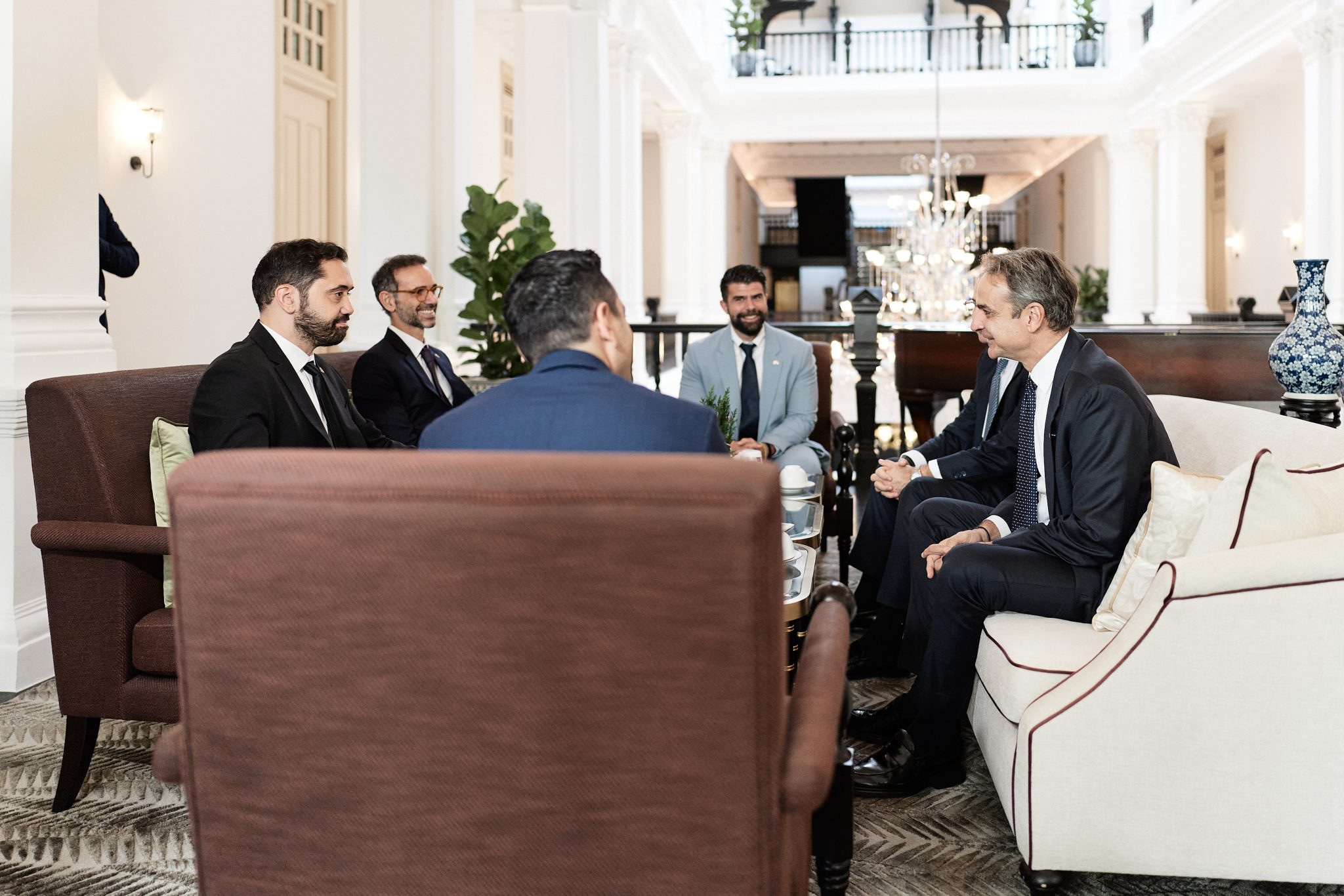 Νωρίτερα, ο κ. Μητσοτάκης συναντήθηκε με τον πρόεδρο και τον πρωθυπουργό της χώρας. Στην ατζέντα των συζητήσεών τους βρέθηκαν οι διεθνείς και περιφερειακές εξελίξεις, αλλά και η διεύρυνση της συνεργασίας από μια σειρά από τομείς όπως ο τουρισμός, η ναυτιλία, η άμυνα, η ψηφιακή διακυβέρνηση, η τεχνητή νοημοσύνη, οι επενδύσεις αλλά και οι ελληνικές εξαγωγές.