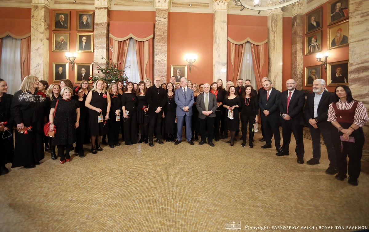 Σε εορταστικό κλίμα το Μέγαρο της Βουλής «πλημμύρισε» σήμερα από παραδοσιακές χριστουγεννιάτικες μελωδίες, κάλαντα, παραδοσιακούς σκοπούς, χορούς και ευχές. Ο Πρόεδρος της Βουλής των Ελλήνων, κ. Κωνσταντίνος Τασούλας, υποδέχθηκε στον χώρο του Εντευκτηρίου παιδιά από το Νηπιαγωγείο της Βουλής, τον Όμιλο Βρακοφόρων Κρήτης, το Κέντρο Ειδικών Ατόμων η «Χαρά», τη Χορωδία του Συλλόγου των Υπαλλήλων της Βουλής, το Λύκειο των Ελληνίδων και τον Πολιτιστικό Σύλλογο Ηπειρωτών Βριλησσίων «Ο Πύρρος», που τραγούδησαν παραδοσιακά κάλαντα από την Κρήτη, την Ήπειρο, την Θράκη και τα ελληνικά νησιά.