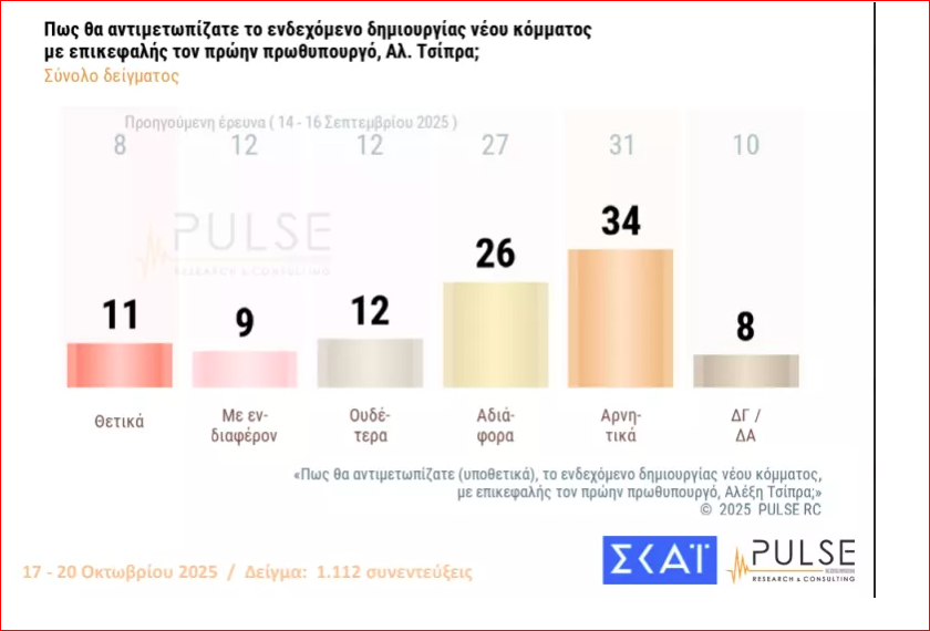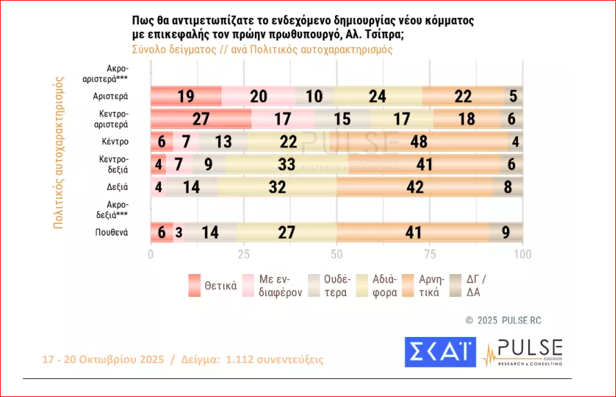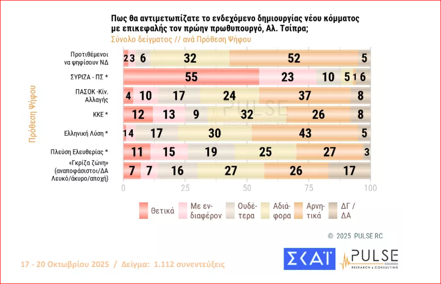 - Αλέξης Τσίπρας: Το «ταβάνι» της επιρροής του παραμένει σταθερά στο 20% των πολιτών που δηλώνουν ότι θα μπορούσαν να τον ψηφίσουν. Ο κ. Τσίπρας εμφανίζεται ένα βήμα πριν από τη δημιουργία κόμματος ή ενός νέου φορέα, κίνηση που αναμένεται να αναδιαμορφώσει καθοριστικά τις πολιτικές ισορροπίες.