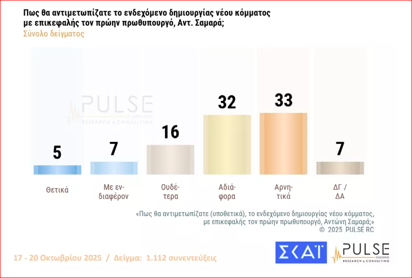 Το πολιτικό σκηνικό αναμένεται να επηρεάσει και μία πιθανή κίνηση από τον Αντώνη Σαμαρά. Μπορεί να ποσοστά αποδοχής να μην είναι υψηλά, ωστόσο θα «κόψει» ψήφους από τη Νέα Δημοκρατία, δυσχεραίνοντας ακόμη περισσότερο την προσπάθεια του κυβερνώντος κόμματος να εξασφαλίσει εκ νέου την αυτοδυναμία.
