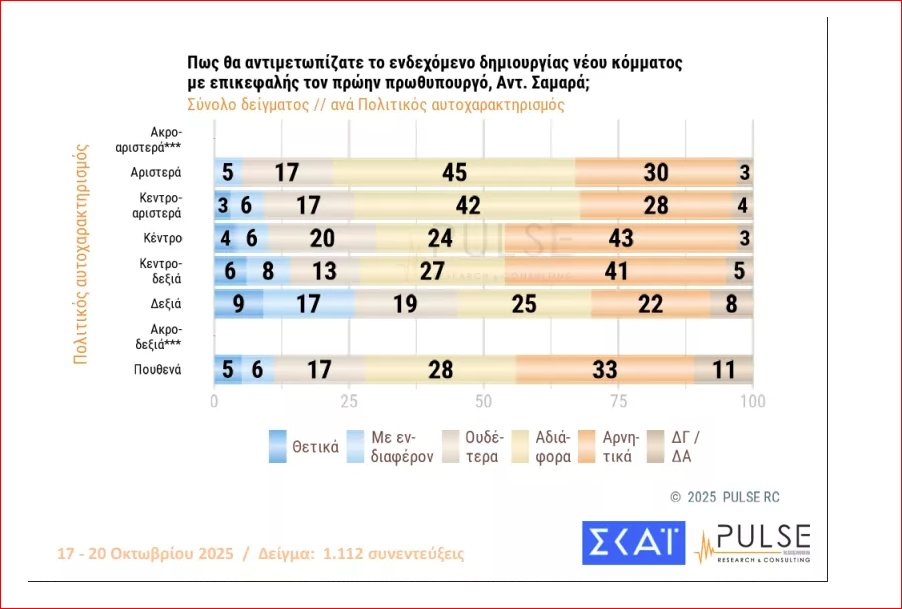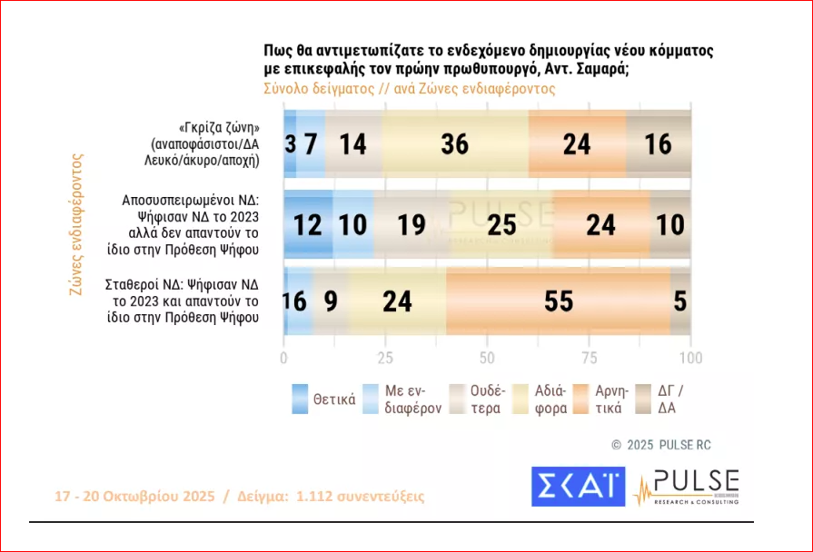 - Αντώνης Σαμαράς: Παρότι τα ποσοστά αποδοχής του δεν είναι υψηλά, μια πιθανή κίνηση από τον Αντώνη Σαμαρά ενδέχεται να «κόψει» ψήφους από τη Νέα Δημοκρατία, δυσχεραίνοντας την προσπάθεια του κυβερνώντος κόμματος να εξασφαλίσει εκ νέου την αυτοδυναμία.