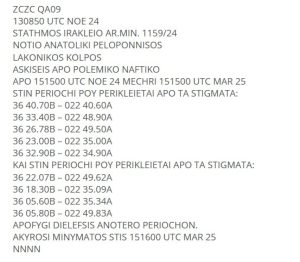 Την έκτη διαδοχική παράταση σε μία σειρά ναυτικών ασκήσεων στον Λακωνικό Κόλπο, με διάρκεια ακόμη 4 μηνών (θα ολοκληρωθούν μέσα Μαρτίου) που αποτρέπουν σε μεγάλο βαθμό τις μεταφορές ρωσικού πετρελαίου κοντά στις ελληνικές ακτές, αποφάσισε η Αθήνα.