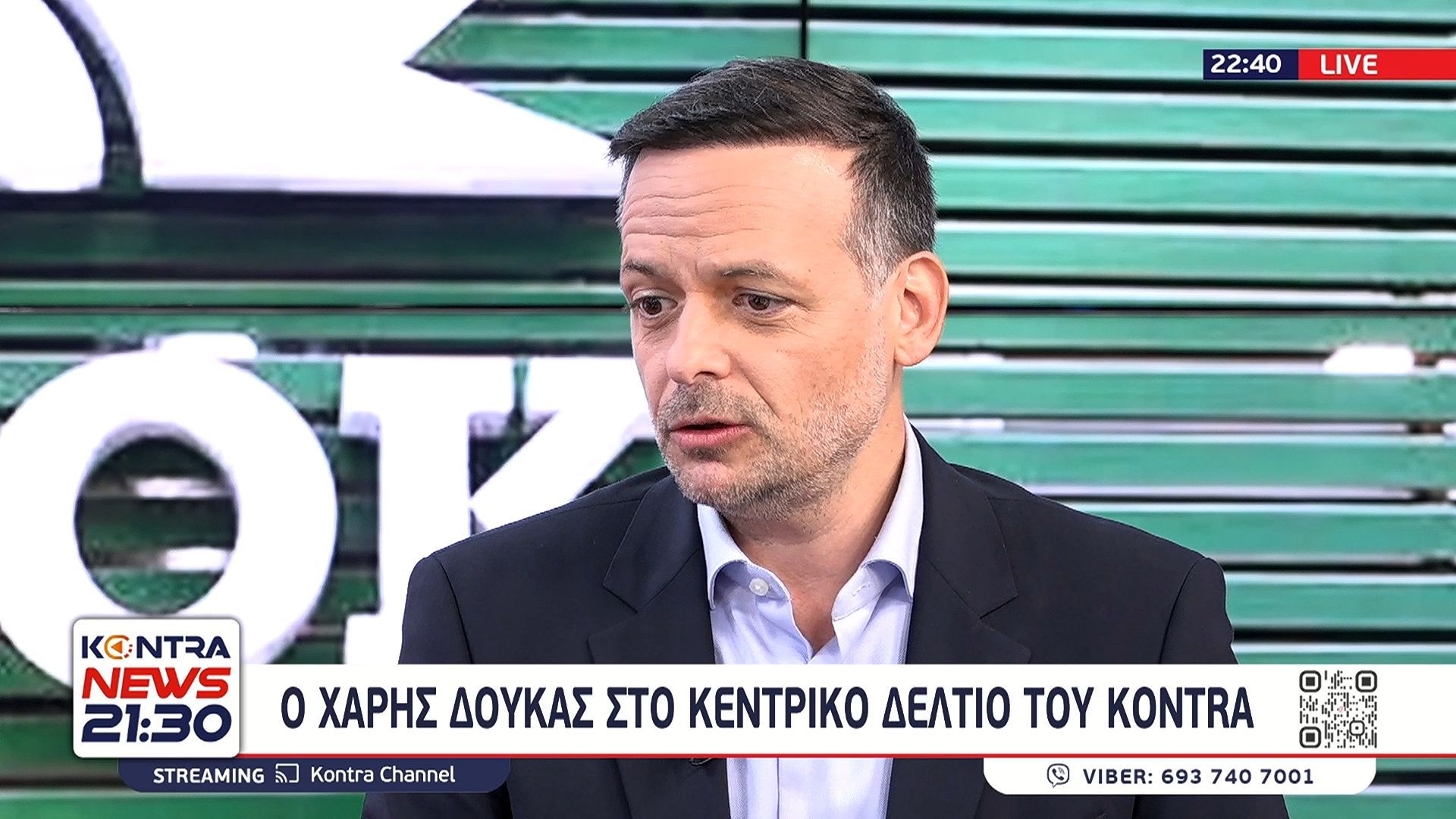Ο Χάρης Δούκας στο κεντρικό δελτίο του Kontra Channel