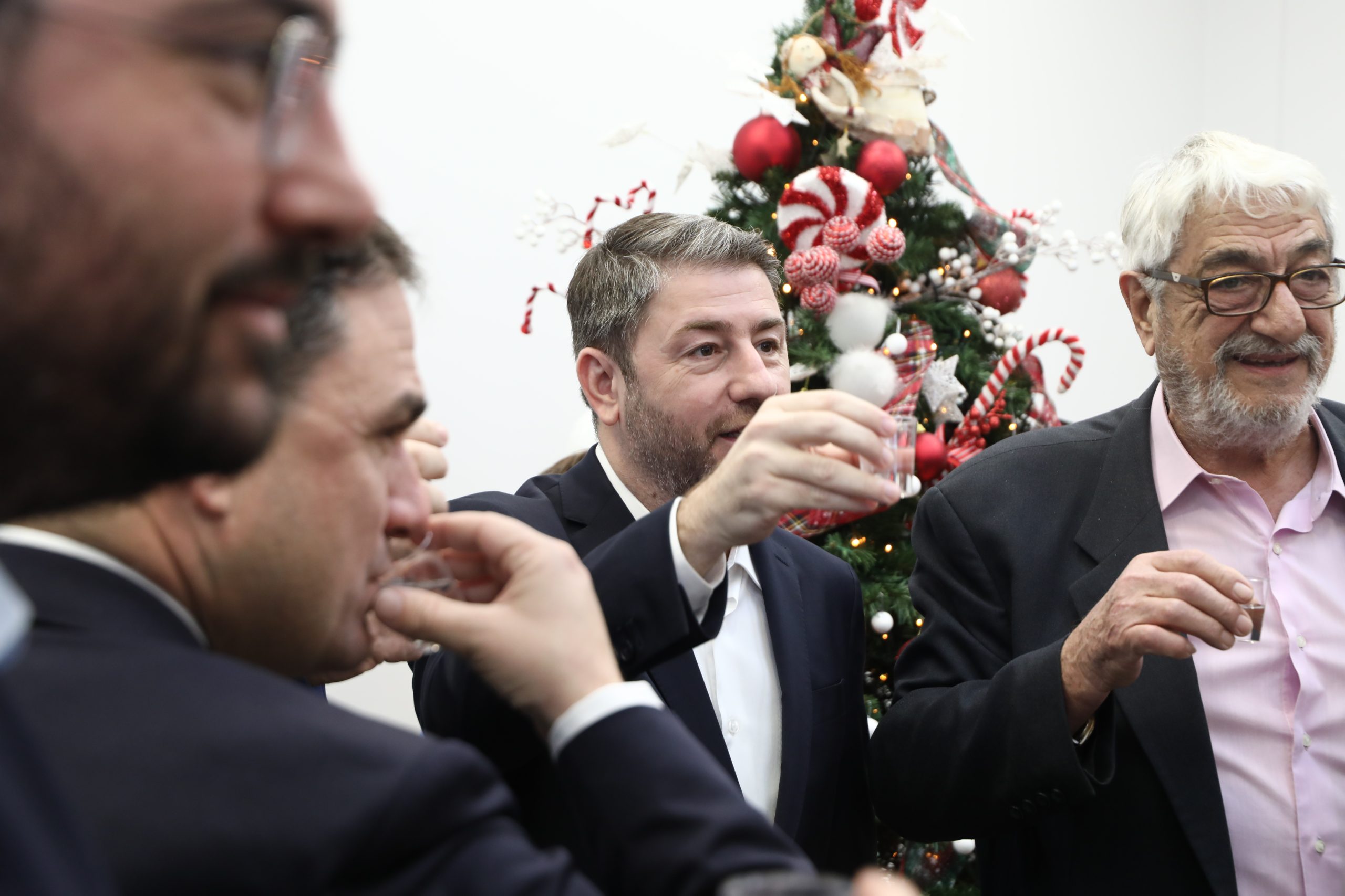 Στα κεντρικά γραφεία στη Χαριλάου Τρικούπη βρέθηκαν για τα κάλαντα πολλά στελέχη του κόμματος, ενώ δίπλα στον κ. Ανδρουλάκη ήταν και ο γιος του, Μαρίνος.