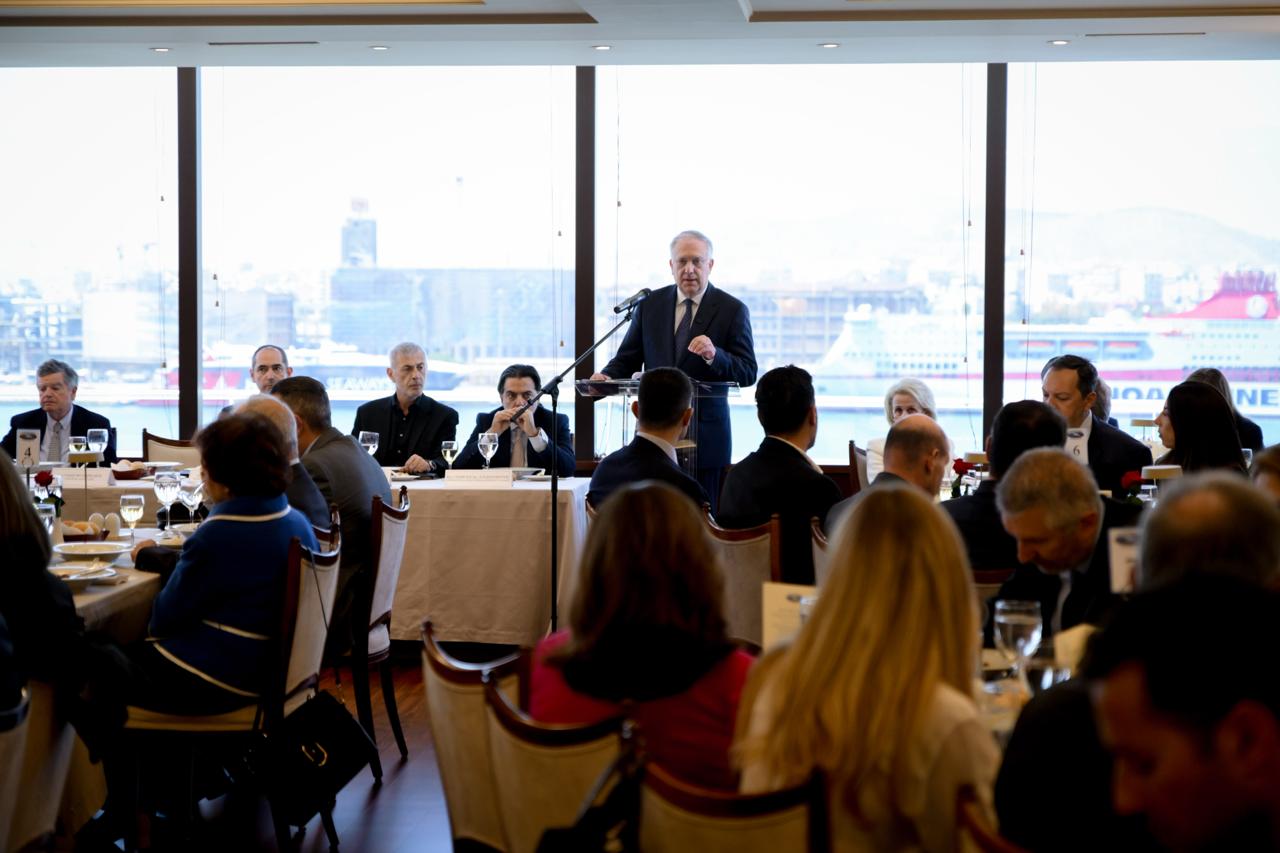 Αναφερόμενος στη δύναμη της ελληνικής ναυτιλίας, ανέφερε πως «έχουμε 5.691 πλοία, αντιπροσωπεύοντας περίπου το 20% της παγκόσμιας χωρητικότητας. Οι θαλάσσιες μεταφορές αποτελούν προϋπόθεση για την ευημερία δισεκατομμυρίων ανθρώπων σε όλο τον πλανήτη, καθώς πάνω από το 80% του όγκου του παγκόσμιου εμπορίου διακινείται διά θαλάσσης. Τα ελληνικά πλοία μεταφέρουν προϊόντα, καύσιμα, ενεργειακές πρώτες ύλες, στηρίζουν με πρωταγωνιστικό ρόλο την παγκόσμια εφοδιαστική αλυσίδα και επηρεάζουν καθοριστικά τη λειτουργία της διεθνούς οικονομίας».