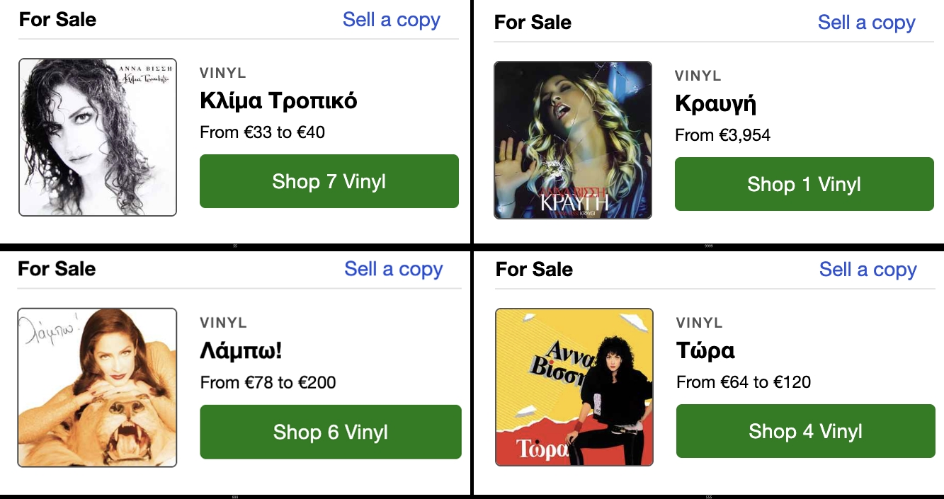 Ο κόσμος που είχε επιλεγεί είχε αρχίσει να μαζεύεται από τις 4 το απόγευμα, πιάνοντας στασίδι δύο ώρες πριν αρχίσει η εκδήλωση, όχι για το αν θα μπορούσε να «δει την τραγουδίστρια» (είχαν εξασφαλισμένη πρόσκληση), αλλά για τη χαρά της ανυπομονησίας σε αυτή την προσδιορισμένη συγκυρία: την κυκλοφορία της Rainbow Collection των εμβληματικών ηχογραφήσεων που κυκλοφόρησε στη Sony (πρώην CBS), πριν αλλάξει δισκογραφική εταιρεία και πάει στην Panic – Panic Gold. Η «Κραυγή» σε διπλό βινύλιο σε μπλε και πράσινο χρώμα (η οποία σε μεταπώληση πιάνει πλέον –παρακαλώ– 4.000 ευρώ!), το «Τώρα» σε κίτρινο βινύλιο (με τιμές που στη μεταπώληση φτάνουν τα 120 ευρώ), το «Κλίμα Τροπικό» σε κόκκινο βινύλιο, το «Λάμπω» σε πορτοκαλί βινύλιο (που πιάνει σε μεταπώληση μέχρι και τα 200 ευρώ) και το «Τραύμα» σε μωβ βινύλιο: αυτά ήταν τα συλλεκτικά βινύλια που βγήκαν μόνο σε 500 κομμάτια και έγιναν ανάρπαστα.