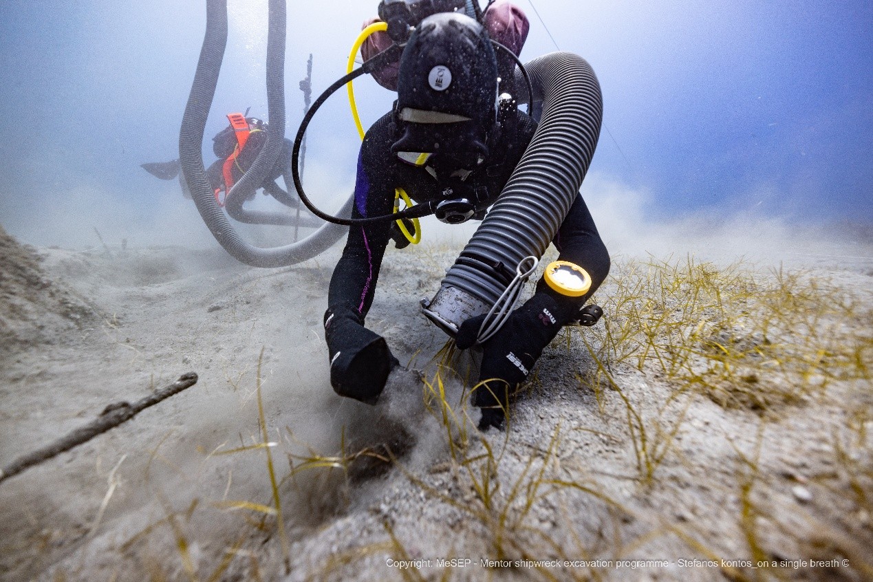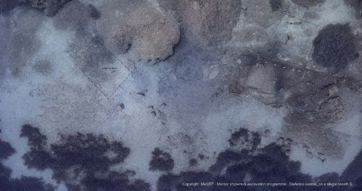Αντικείμενα από τον εξαρτισμό, θραύσματα σκευών καθημερινής χρήσης, αλλά και από την εξωτερική επιχάλκωση του πετσώματος, τμήμα πήλινης πλάκας που πιθανόν σχετίζεται με τη μόνωση της εστίας, καθώς κι ένα θραύσμα μαρμάρινης πλάκας με διακοσμητική σταγόνα, που προέρχεται από το πολύτιμο φορτίο του πλοίου «Μέντωρ», είναι μερικά από τα ευρήματα της φετινής συστηματικής υποβρύχιας αρχαιολογικής έρευνας της Εφορείας Εναλίων Αρχαιοτήτων στο ιστορικό ναυάγιο, όπως πληροφορεί σημερινή ανακοίνωση του ΥΠΠΟ. Η έρευνα συνεχίσθηκε το 2025, υπό την διεύθυνση του αρχαιολόγου, Δρ. Δημητρίου Κουρκουμέλη-Ροδοστάμου, αναπληρωτή προϊστάμενου της Υπηρεσίας.