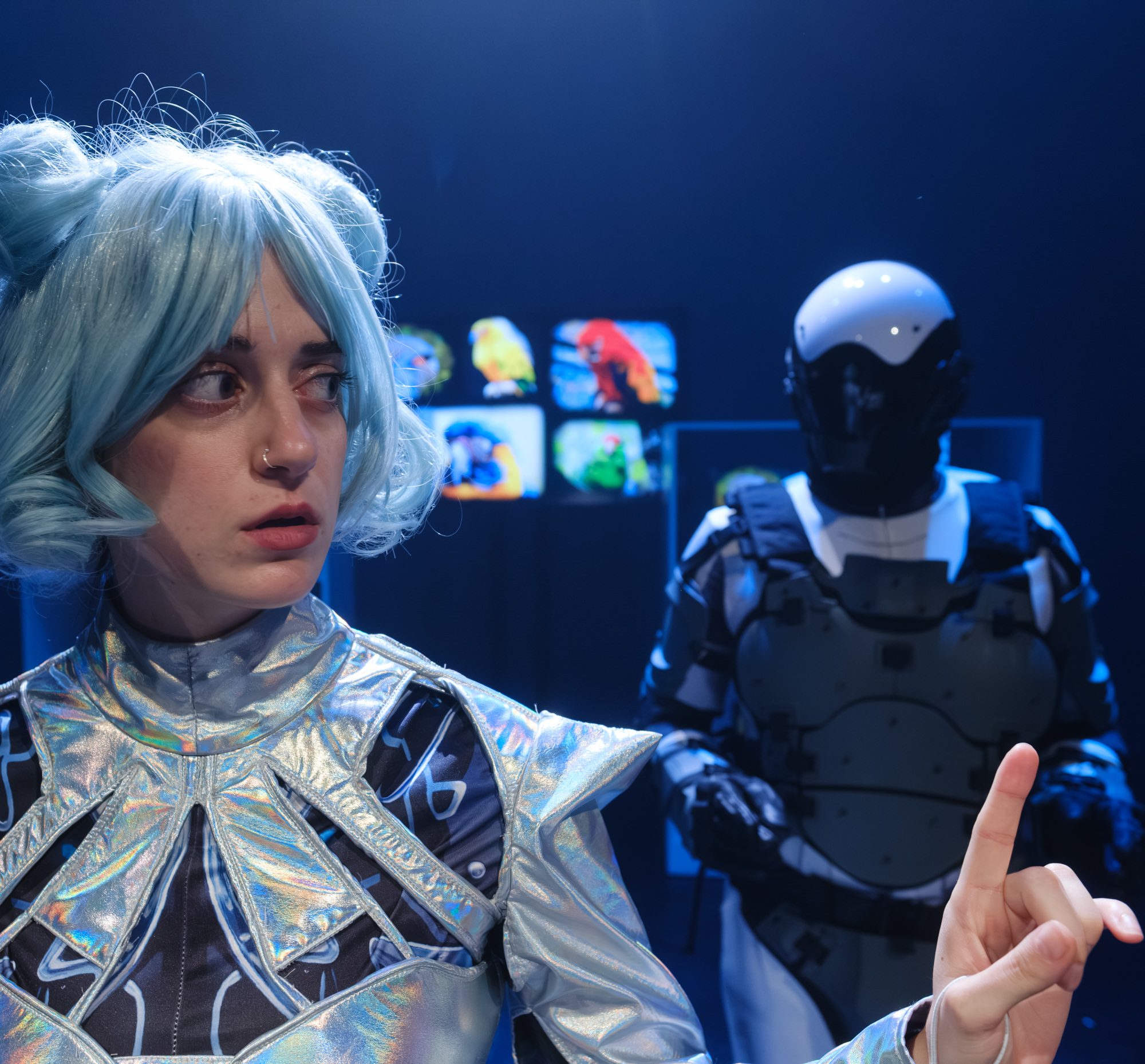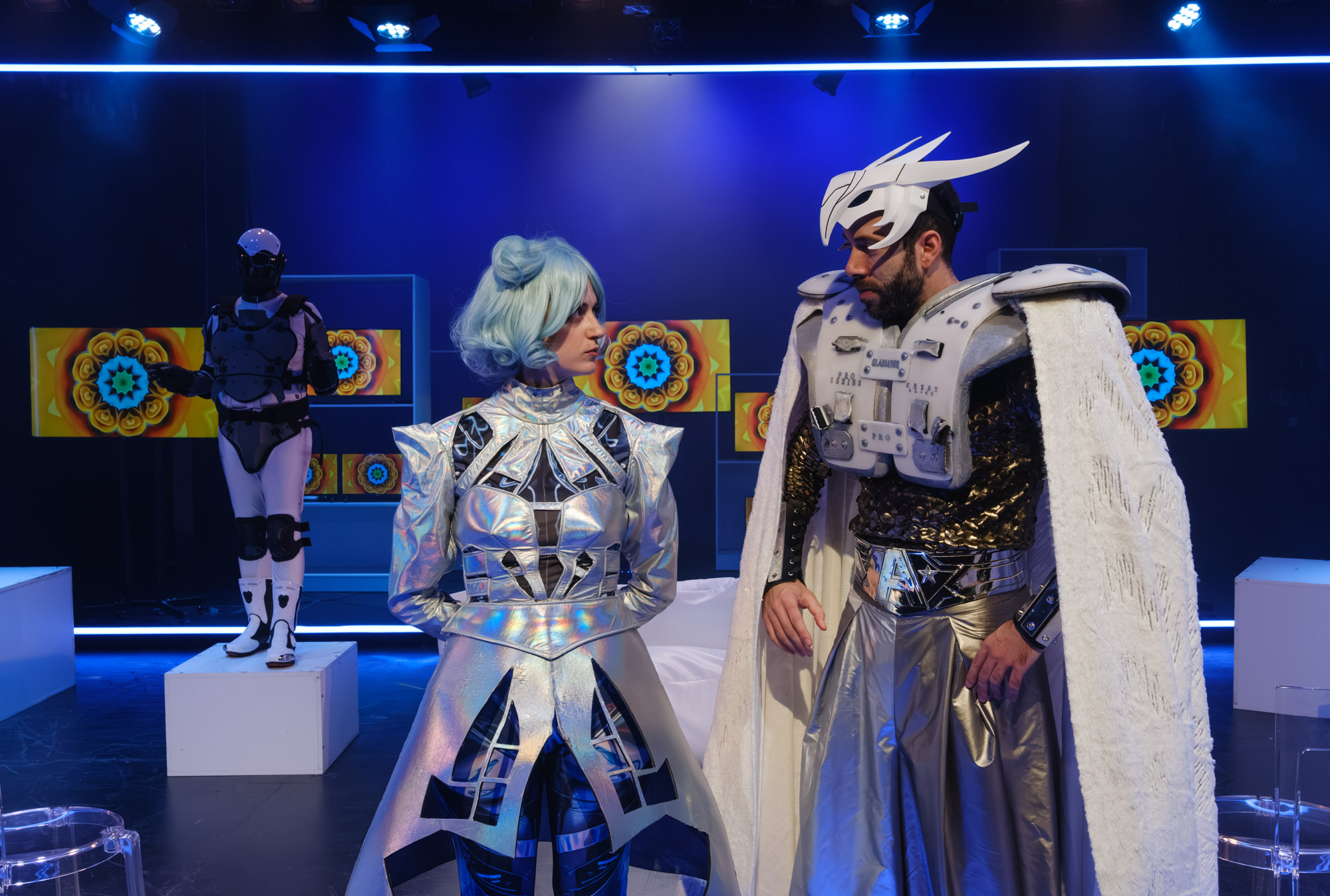 Καθοριστικό ρόλο στη δημιουργία αυτού του μαγικού σκηνικού κόσμου έχουν τα εντυπωσιακά σκηνικά της Ελένης Νανοπούλου και τα θεαματικά κοστούμια της Κλαιρ Μπρέισγουελ, που συνδυάζουν στοιχεία εποχής με φουτουριστικές πινελιές. Την εμπειρία συμπληρώνουν οι υψηλής ποιότητας προβολές του Πάτροκλου Σκαφίδα και οι ατμοσφαιρικοί φωτισμοί της Σοφίας Αλεξιάδου. Όπως σε όλες τις παραστάσεις του Θεάτρου Πόρτα, η μουσική έχει πρωταγωνιστικό ρόλο: ο Κορνήλιος Σελαμσής υπογράφει την πρωτότυπη μουσική και τα τραγούδια, τα οποία ερμηνεύονται ζωντανά επί σκηνής από τον οκταμελή θίασο, προσθέτοντας ρυθμό, συγκίνηση και αμεσότητα στη θεατρική εμπειρία.