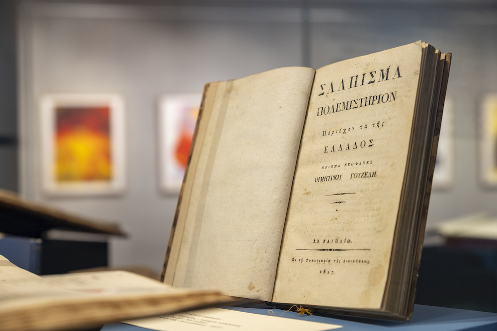 Δίπλα σε σπάνιες εκδόσεις από τις μοναδικές συλλογές της Γενναδείου Βιβλιοθήκης, τα ιστορικά τεκμήρια και τη γραφίδα του ίδιου του Σολωμού, τα έργα του Μανώλη Χάρου μας θυμίζουν πως η συνέργεια ανάμεσα στην ιστορική γνώση που προσφέρει ο πλούτος μιας βιβλιοθήκης και στη δημιουργία της καλλιτεχνικής έμπνευσης, γεννούν τη χαρά της ανακάλυψης.»