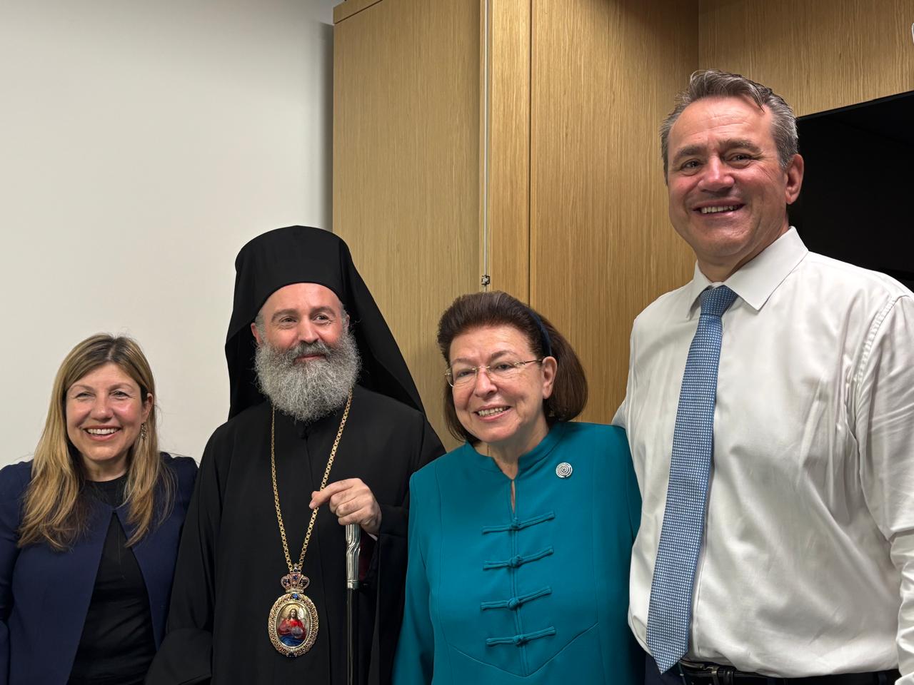 Συνάντηση εργασίας με τον υπουργό της κυβέρνησης της Νέας Νότιας Ουαλίας αρμόδιο για την Πολυπολιτισμικότητα, τη Χωροταξία, την Ιδιοκτησία, την Εργασία, τον Τουρισμό και Αθλητισμό Steve Kamper καθώς και με την υπουργό Βιομηχανίας, Εργασιακής Υγείας και Ασφάλειας Sophie Kotsis, είχε η υπουργός Πολιτισμού Λίνα Μενδώνη, παρουσία του Αρχιεπισκόπου Αυστραλίας κ. κ. Μακαρίου.