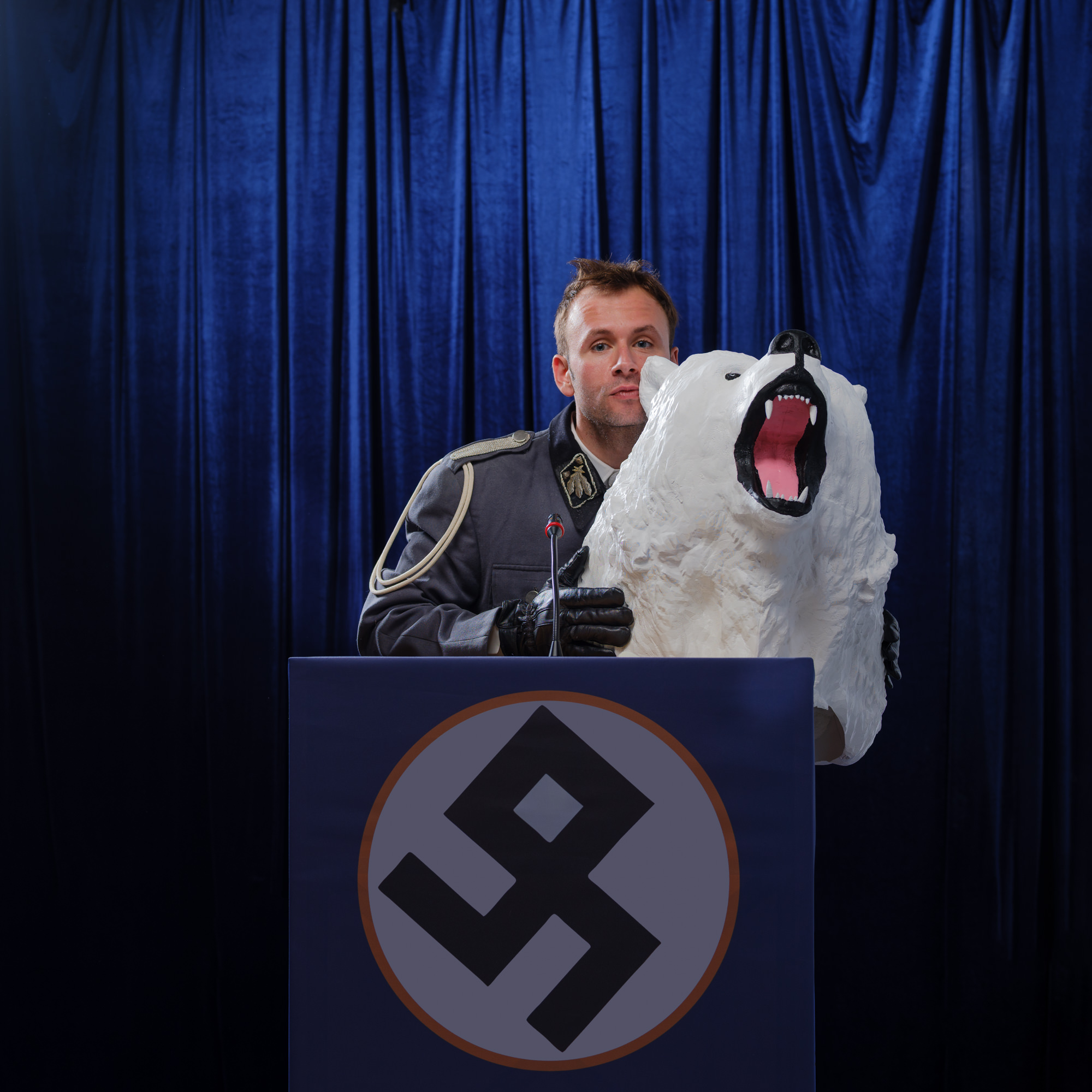 Με έντονα στοιχεία σωματικού θεάτρου και γκροτέσκ αισθητικής, δημιουργεί ένα σύμπαν που θυμίζει ταυτόχρονα καμπαρέ, ψυχιατρικό άσυλο και πολιτική σκηνή. Το αποτέλεσμα είναι ένα καλοκουρδισμένο χάος που λειτουργεί με ακρίβεια.