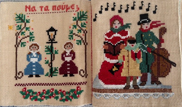Πάνω σε περισσότερους από σαράντα διαφορετικούς καμβάδες, κέντησαν με βελόνι και κλωστή τα λόγια που θα ακούσουμε την παραμονή των Χριστουγέννων και της Πρωτοχρονιάς από τις φωνές των παιδιών που θα χτυπήσουν την πόρτα μας και θα μας ρωτήσουν: Να τα πούμε; Και ανάλογα με την περιοχή θα τραγουδήσουν την τοπική παραλλαγή τους.