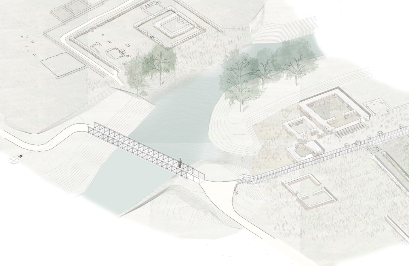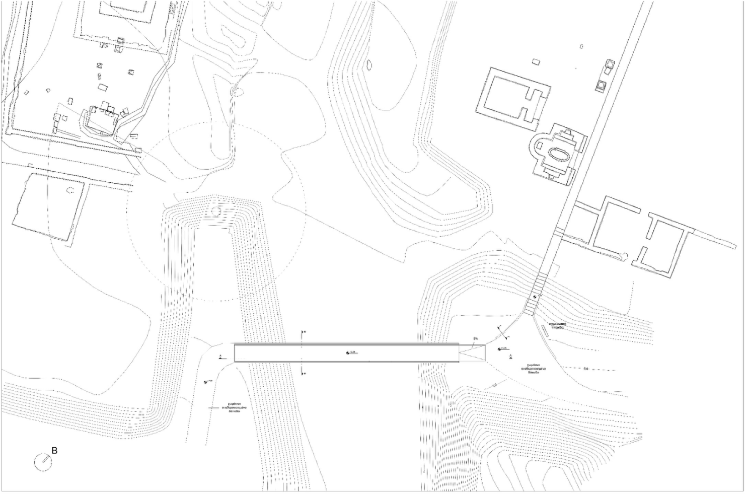 Η γέφυρα, μεταλλική δικτυωματική, έχει άνοιγμα 25μ. από βάθρο σε βάθρο, χωρίς ενδιάμεσα μεσόβαθρα, ενώ το πλάτος της είναι 2μ. μέτρα. Το έργο για την πρόληψη και αντιμετώπιση των κινδύνων που προκαλούνται από τα συχνά πλημμυρικά φαινόμενα βρίσκεται στο στάδιο της ολοκλήρωσης. Οι εργασίες αφορούν στη διευθέτηση της κοίτης του ρέματος Ουρλιάς και της κοίτης του ποταμού Βαφύρα, με στόχο να προστατευθούν τα αρχαία μνημεία και να διασφαλιστεί η απρόσκοπτη επίσκεψη στον χώρο. Το έργο χρηματοδοτείται από το Ταμείο Ανάκαμψης με 2.250.000 ευρώ. Ταυτόχρονα, ολοκληρώνεται με πόρους του Περιφερειακού Επιχειρησιακού Προγράμματος Κεντρικής Μακεδονίας-ΕΣΠΑ 2014-2020, προϋπολογισμού 1.915.000 ευρώ, ο συνολικός ευπρεπισμός του οικοδομικού τετραγώνου της αγοράς και η διαμόρφωση ασφαλούς πρόσβασης όλων των επισκεπτών στο μνημειακό σύνολο. Συγχρόνως, με πόρους από το ΠΕΠ Κεντρικής Μακεδονίας- ΕΣΠΑ 2021-2027, χρηματοδοτείται το έργο -προϋπολογισμού 1.500.000 ευρώ- της αποκατάστασης των θερμών (των δημόσιων λουτρών).