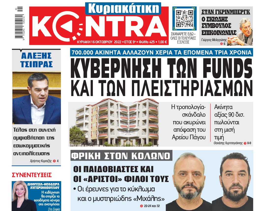 Kυβέρνηση των funds και των πλειστηριασμών – Διαβάστε σήμερα στην Κυριακάτικη Kontra