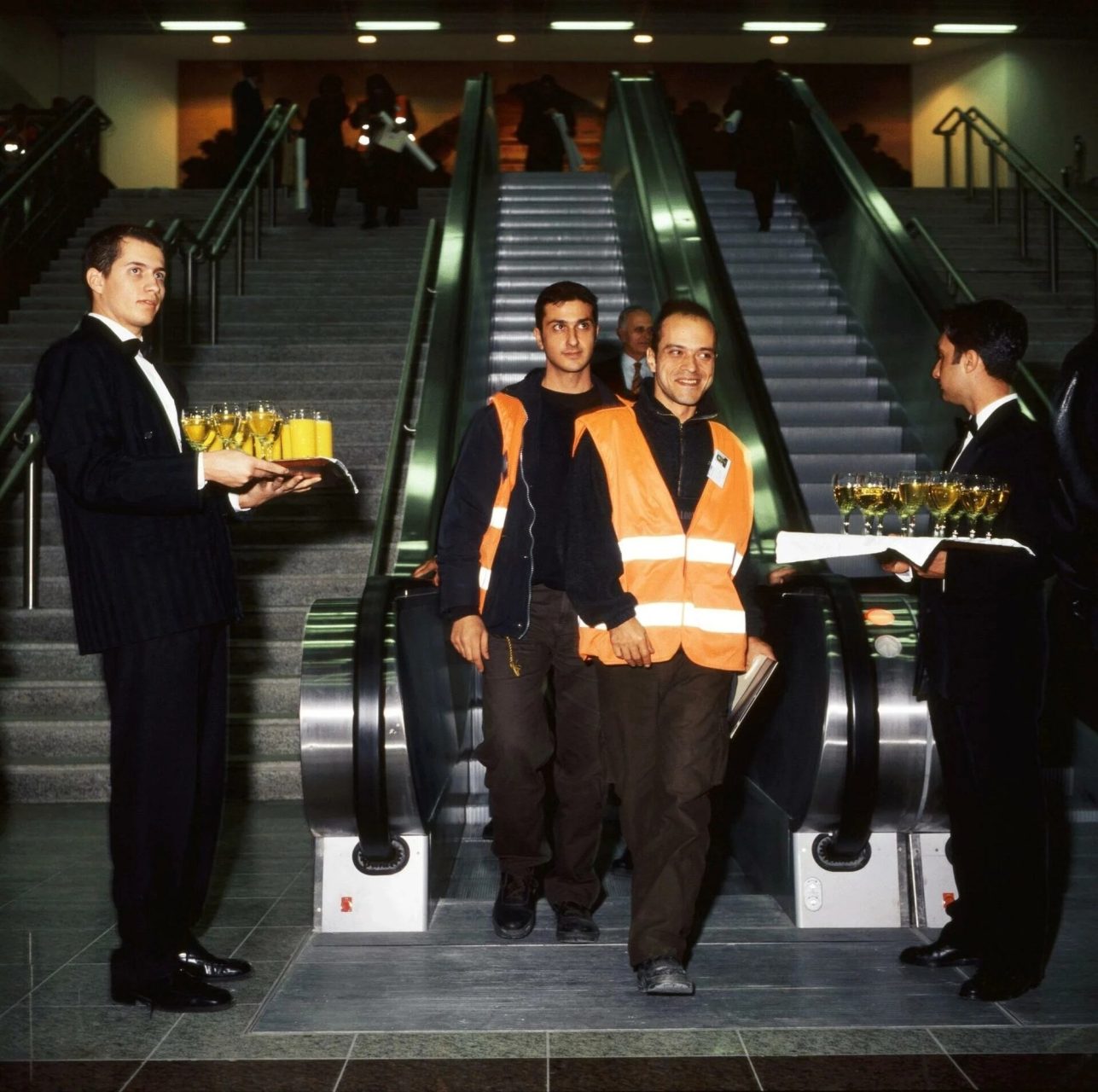 Οι εικόνες αποτυπώνουν μια Αθήνα που έμπαινε στον 21ο αιώνα με αισιοδοξία: καλεσμένοι με επίσημο ένδυμα, σερβιτόροι με σαμπάνιες, πολιτικοί, καλλιτέχνες και άνθρωποι της δημόσιας ζωής να περιηγούνται στις αποβάθρες και στους συρμούς, πριν ακόμη το Μετρό γεμίσει με τους καθημερινούς επιβάτες.
