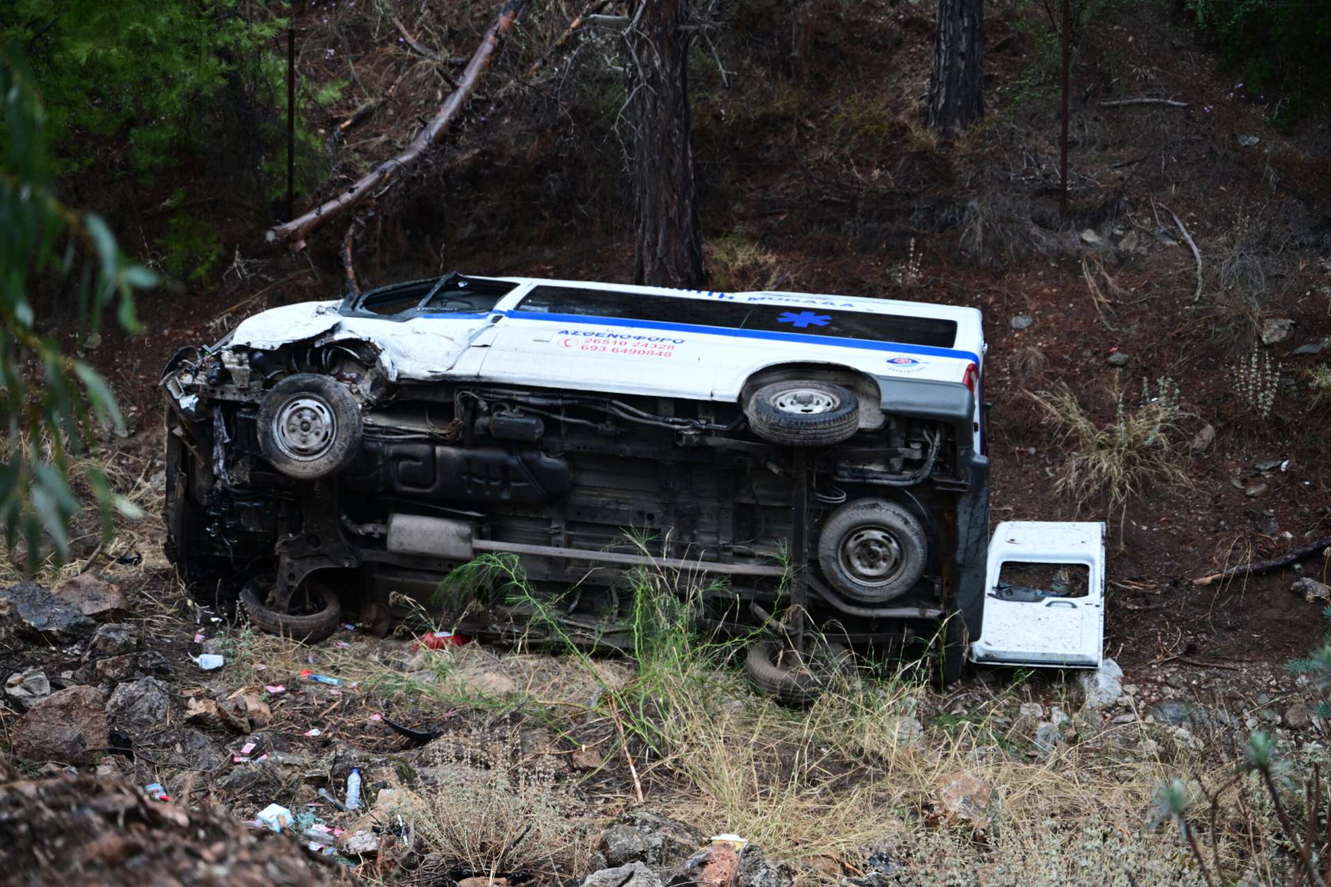 Ασθενοφόρο έπεσε πάνω σε κλούβα της ΕΛΑΣ στον Πλατύκαμπο -Τραυματίστηκε ο συνοδηγός